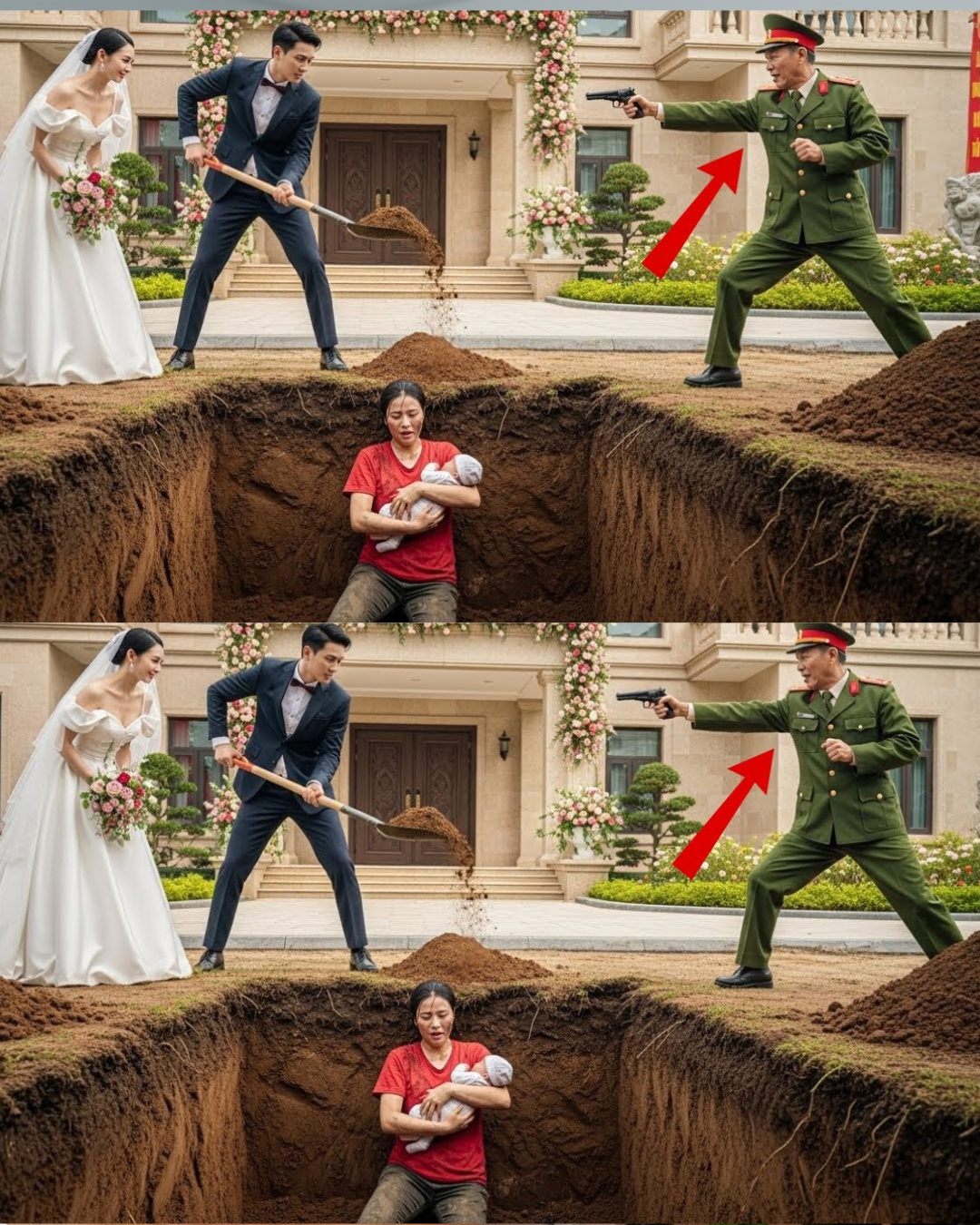 “Nằm im! Nhà tôi không cần đồ bẩn. Với lại, đừng có bế cháu. Người bà ấy lấm lem, vi trùng đầy người, tôi không cho đâu.”
